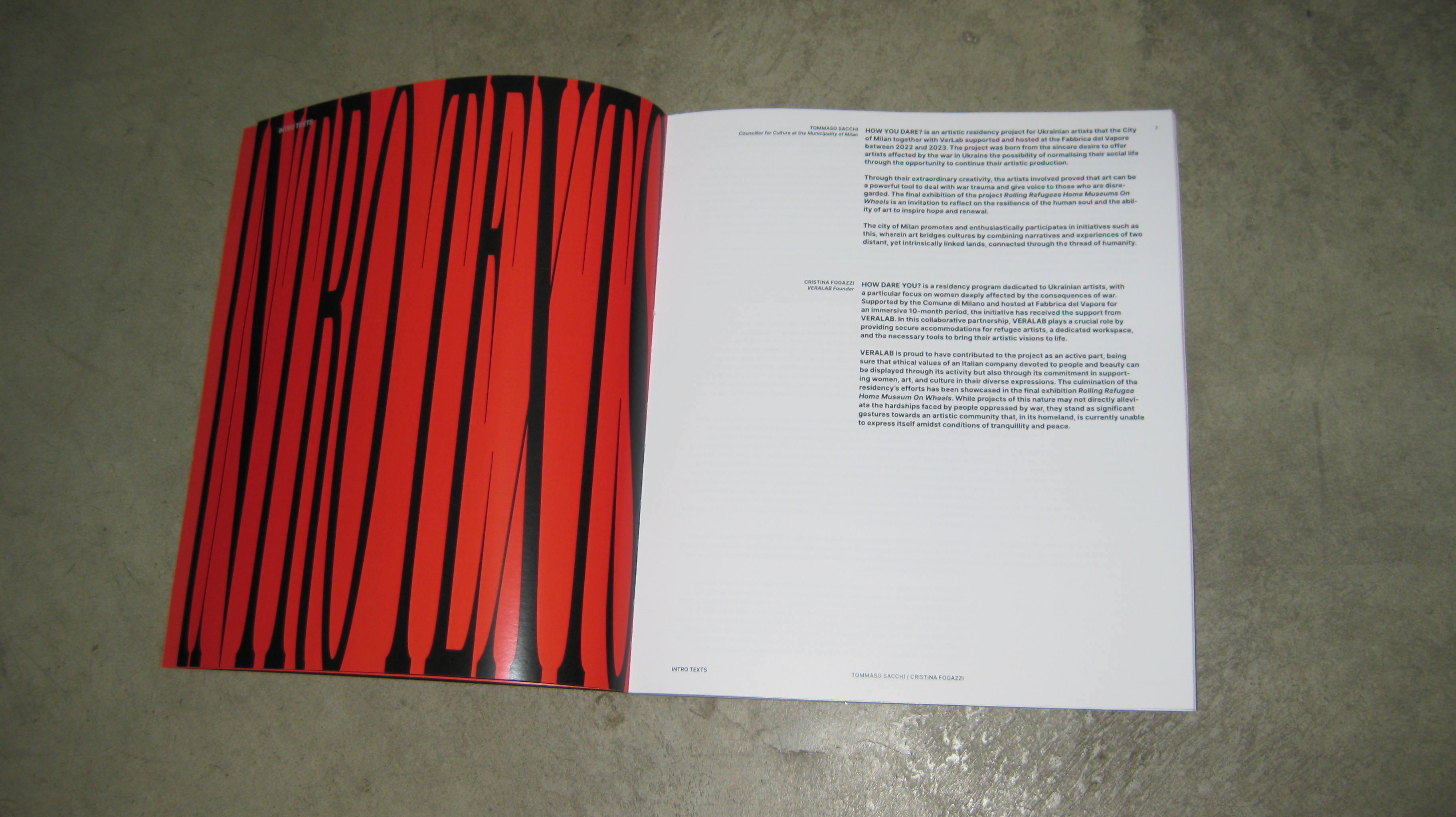 This publication, edited by Sergey Kantsedal (with Antonella Prasse) and produced by Nova Express Publishing with design by Andrea Magnani (Siliqoon Agency), documents the residency program for Ukrainan artists HOW YOU DARE? which took place at at Fabbrica del Vapore in Milan from May 2022 to April 2023.